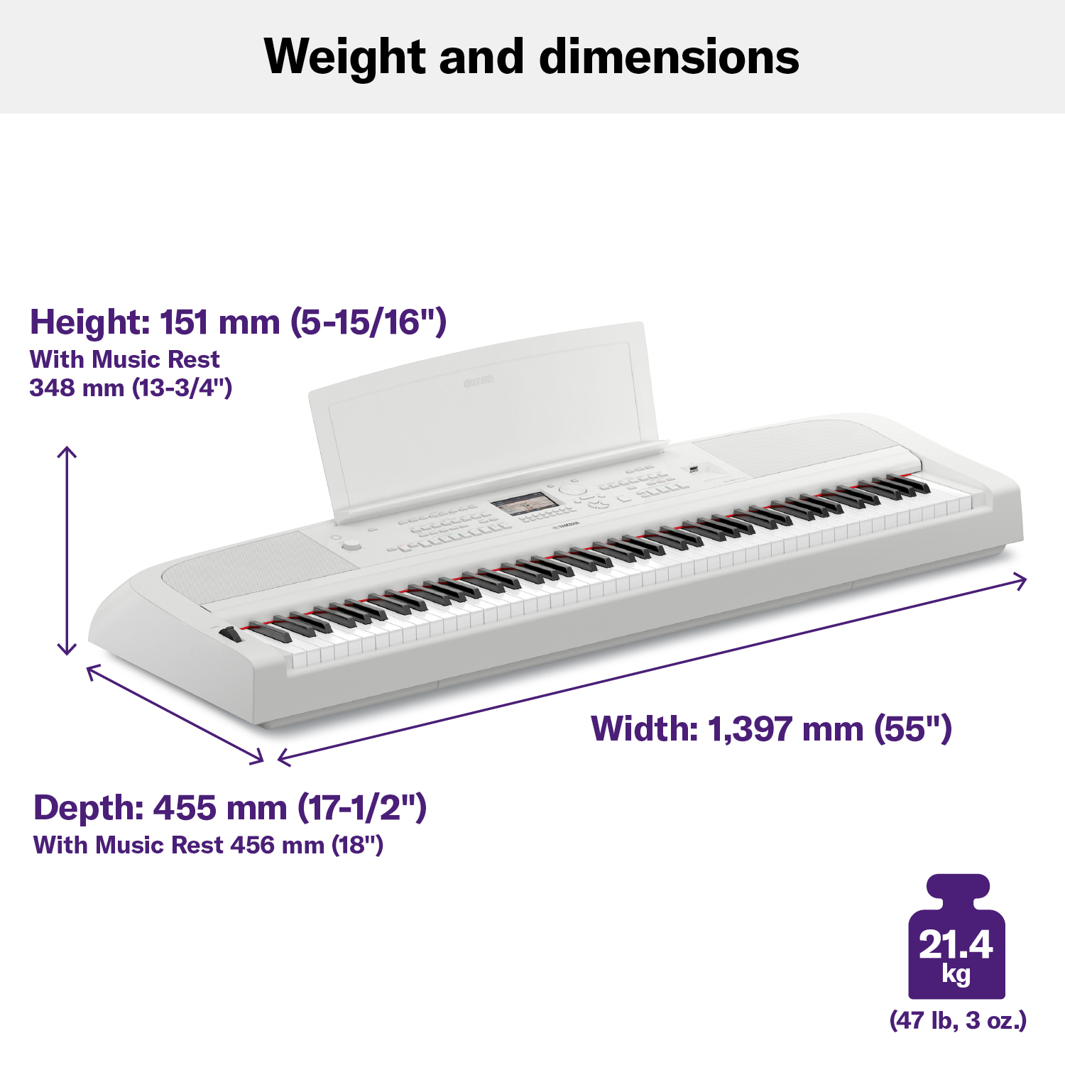 | Accessories: | Owner’s Manual, Online Member Product Registration, AC adaptor* (PA-300C), Power cord, Music rest, Footswitch |