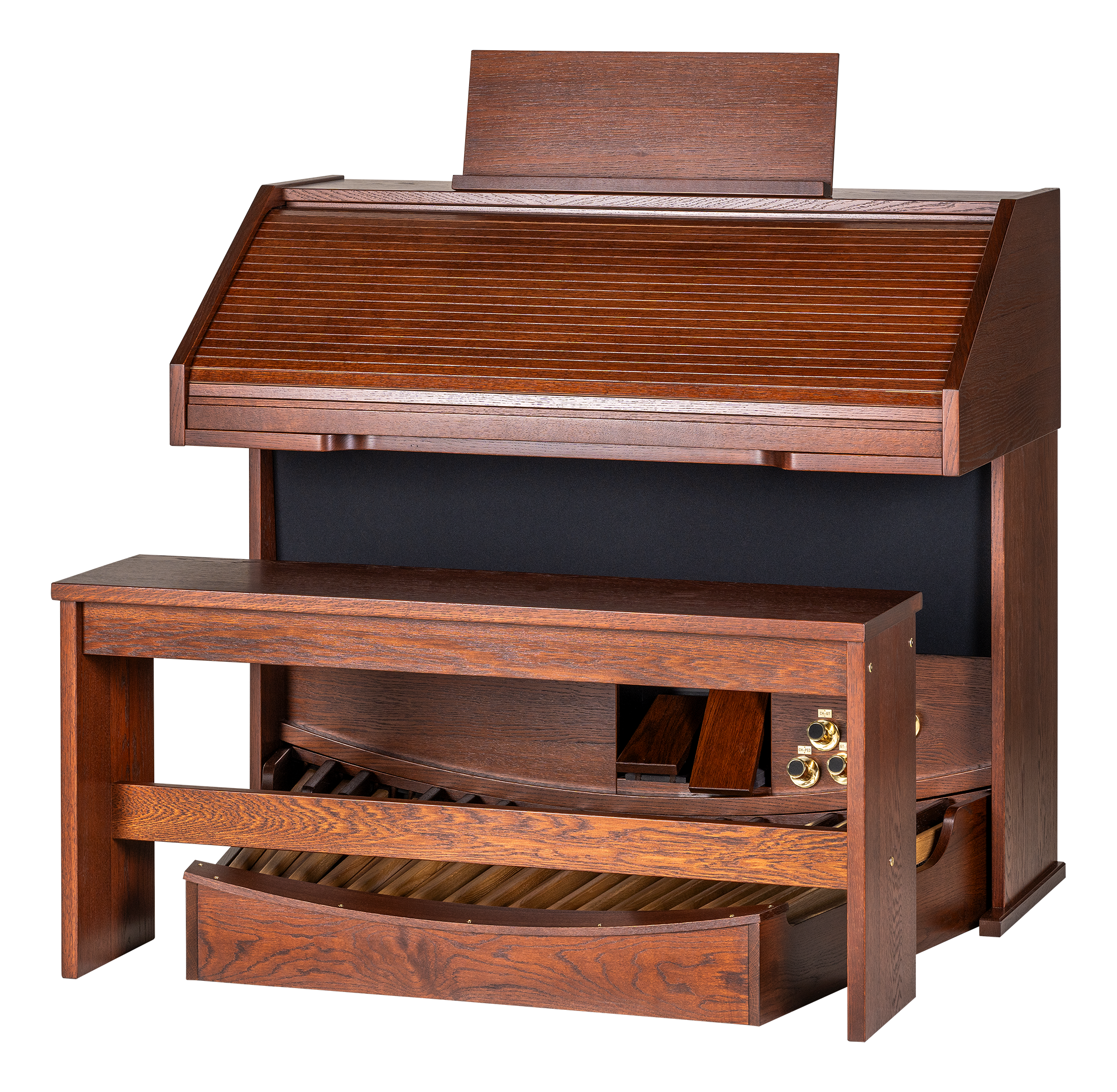 The Opus features a powerful 4.1 audio system. As a result, all stops are played flawlessly and convincingly. Whether it is the specific character of a Principal or a full plenum, the audio system with subwoofer ensures a realistic pipe organ sound which effortlessly fills the room.