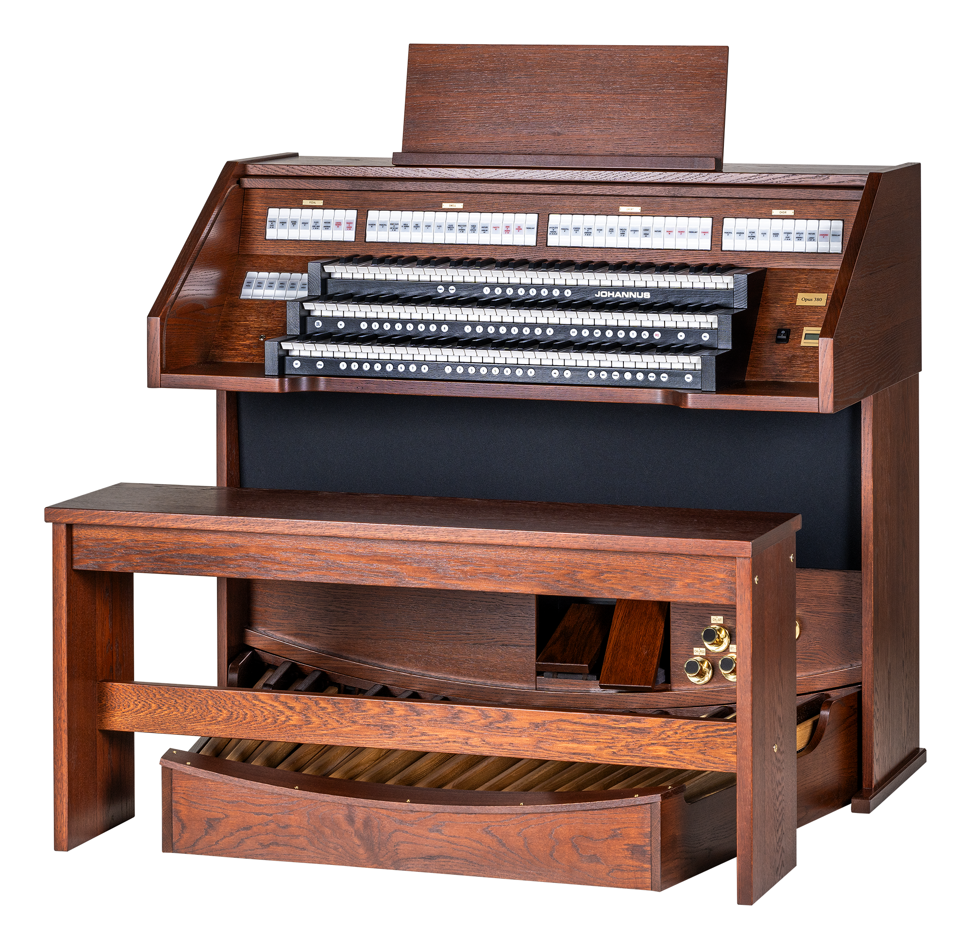 Johannus Opus 380 3-Manual Lighted Tab Home Organ - 43 Stops - 4.1 Internal Audio System