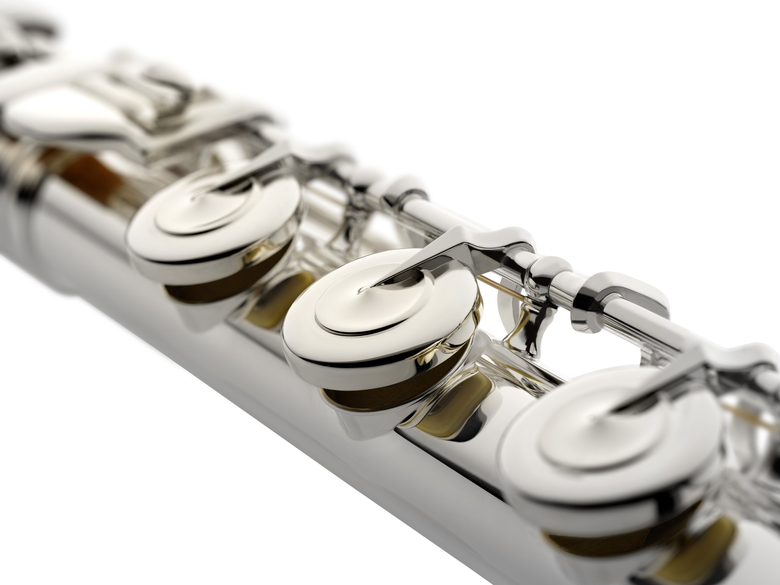 One unique feature for a flute of this price point are soldered C and trill toneholes. Soldered tone holes mean that the tone holes are not drawn from the tube of the flute. They are constructed individually then are literally soldered to the body of the instrument. Soldered tone holes are more consistent in construction and can be filed completely flat on top making for better pad seating. They also tend to have a more resonant, dark, and powerful sound where drawn tone holes tend to be more brilliant. The placement of these soldered tone holes will help improve the resonance of your C# as well as any trills that involve the trill keys.