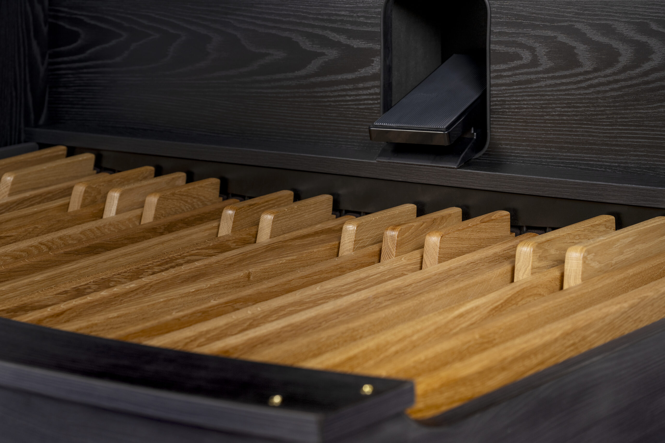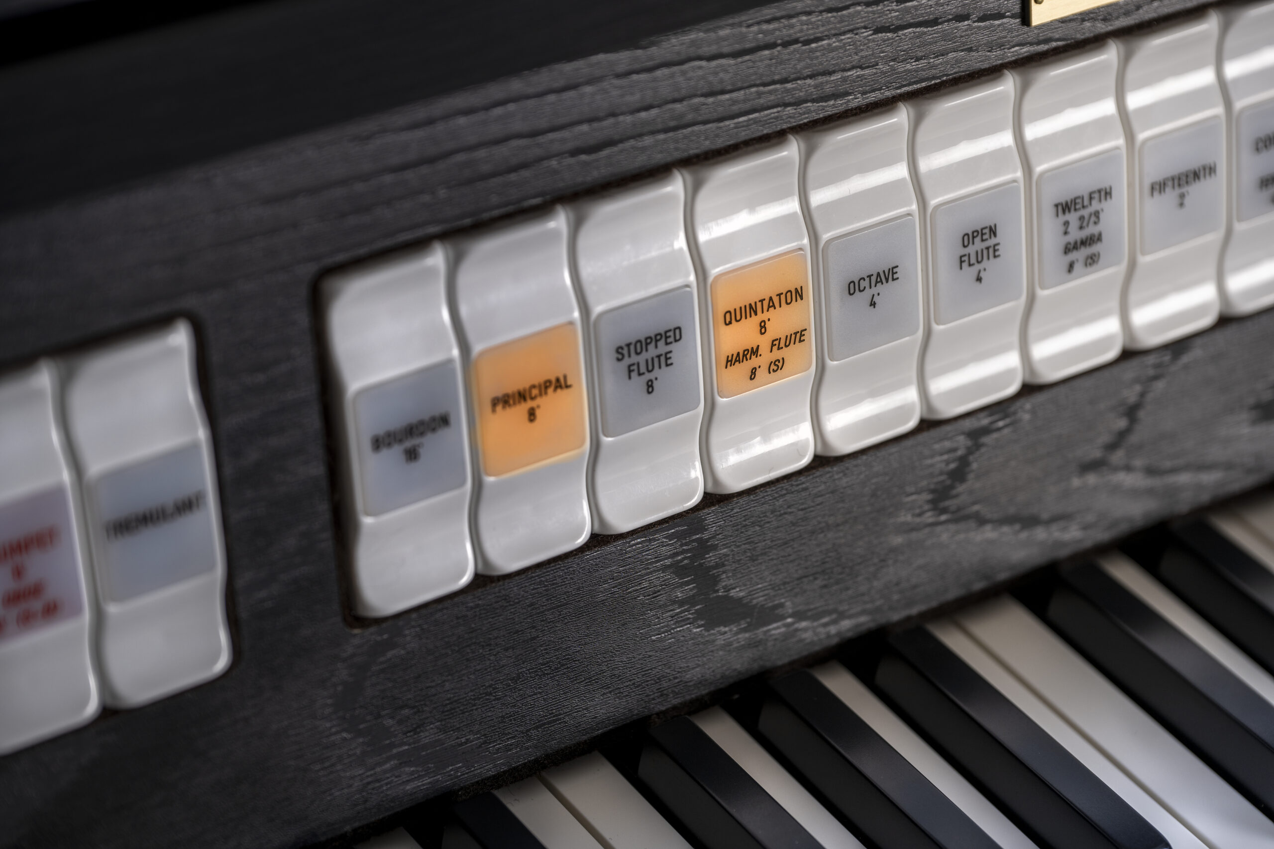 The Studio console design is sleek and compact. The organ is available in four colours (Light Riverside, Charcoal Black, Nautilus Teak and Wengé), making it a great match for any interior. As the console also takes up hardly any space, the Studio is at home in every living room.
