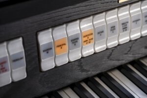 The Studio has four organ styles: romantic, symphonic, baroque and historical. Each style has stops from specific historical pipe organs. To best showcase each style, a stoplist was chosen in which stops are linked specifically to a particular style, which is why some stop tabs have a double engraving. For instance the symphonic set offers organists a Flûte Harmonique, while the Quintadeen can be heard via the same stop tabs in the romantic, baroque and historical set. The baroque set’s swell division also has a complete principal chorus and the treble and the carillon can be heard in the historical set. The Studio cleverly interprets the unique sounds of each style. Practising was never so much fun or realistic.