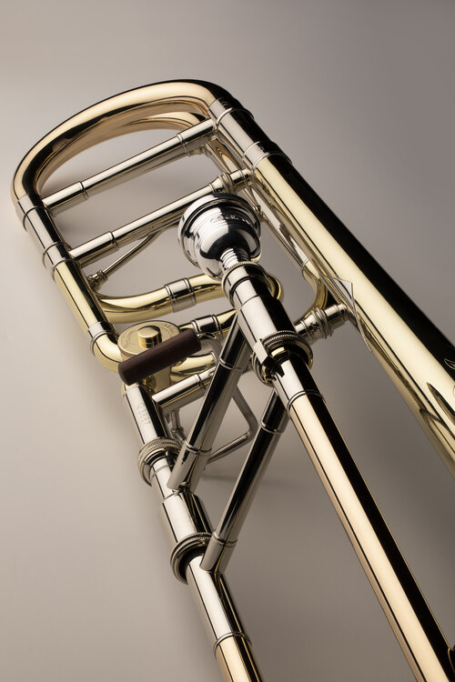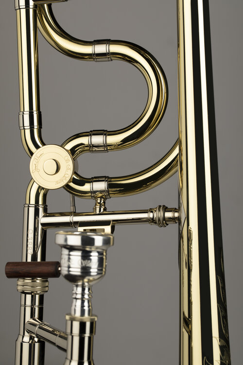 This model comes with three interchangeable yellow brass leadpipes, allowing the trombonist to tailor the instrument’s response and feel to their preference. The central number of the leadpipe model indicates the relative size of the venturi (the tightest point in the taper). The venturi largely determines the efficiency of the blow and also influences response, articulation, timbre, and density of sound.